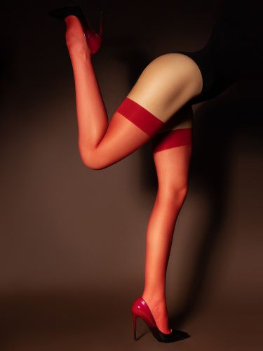 Красные матовые капроновые чулки под пояс – тот элемент одежды, который должен быть у каждой женщины. Главными отличительными особенностями этой модели являются их длина и обхват. На модели они надеты выше середины бедра, но, вы должны знать, что их можно расположить еще выше, при росте 175 см они свободно могут доходить до ягодиц и не пережимать ногу. Благодаря особому плетению затемненные полосочки, если они появятся, можно убрать, поочередно потянув материал сначала по горизонтали, а потом по вертикали несколько раз. Плотность - 20 ден.