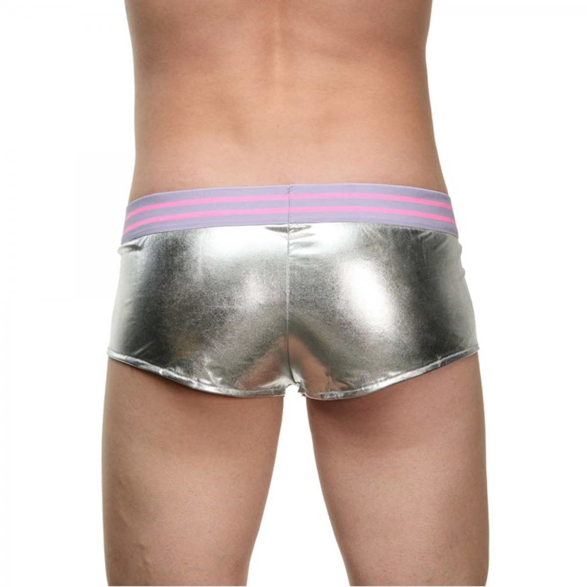 Мужские серебристые трусы-боксеры с широкой резинкой в полоску.