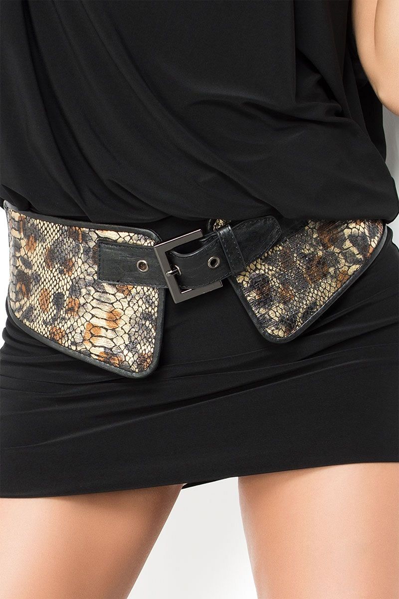 Широкий пояс с тиснением «питон» из эко-кожи, спереди регулируемая застёжка.