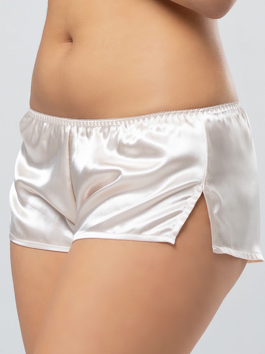 Атласные шортики с разрезами по бокам.