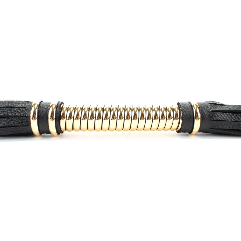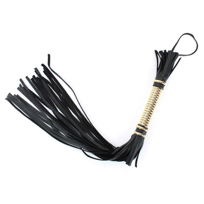 Плетка изготовлена из кожи, является одной из наиболее популярных секс-игрушек. БДСМ-атрибутика с жесткой рукоятью со стильной золотистой оплеткой поможет расширить границы удовольствия.