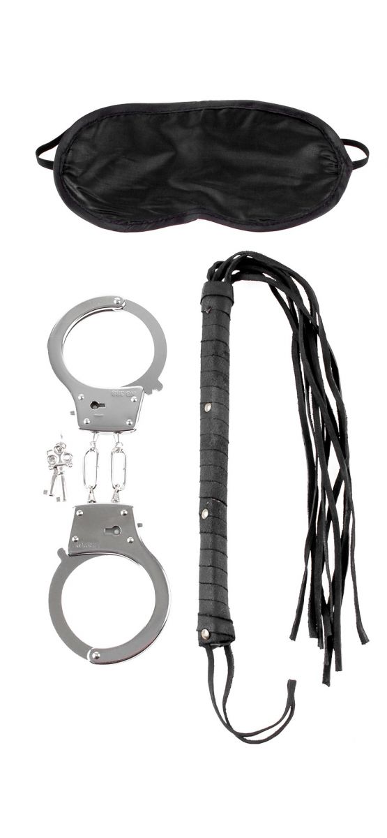 Набор для любовных игр: - металлические наручники с ключами - кожаная плетка - маска из нейлона на глаза. Материал: металл, кожа, нейлон.