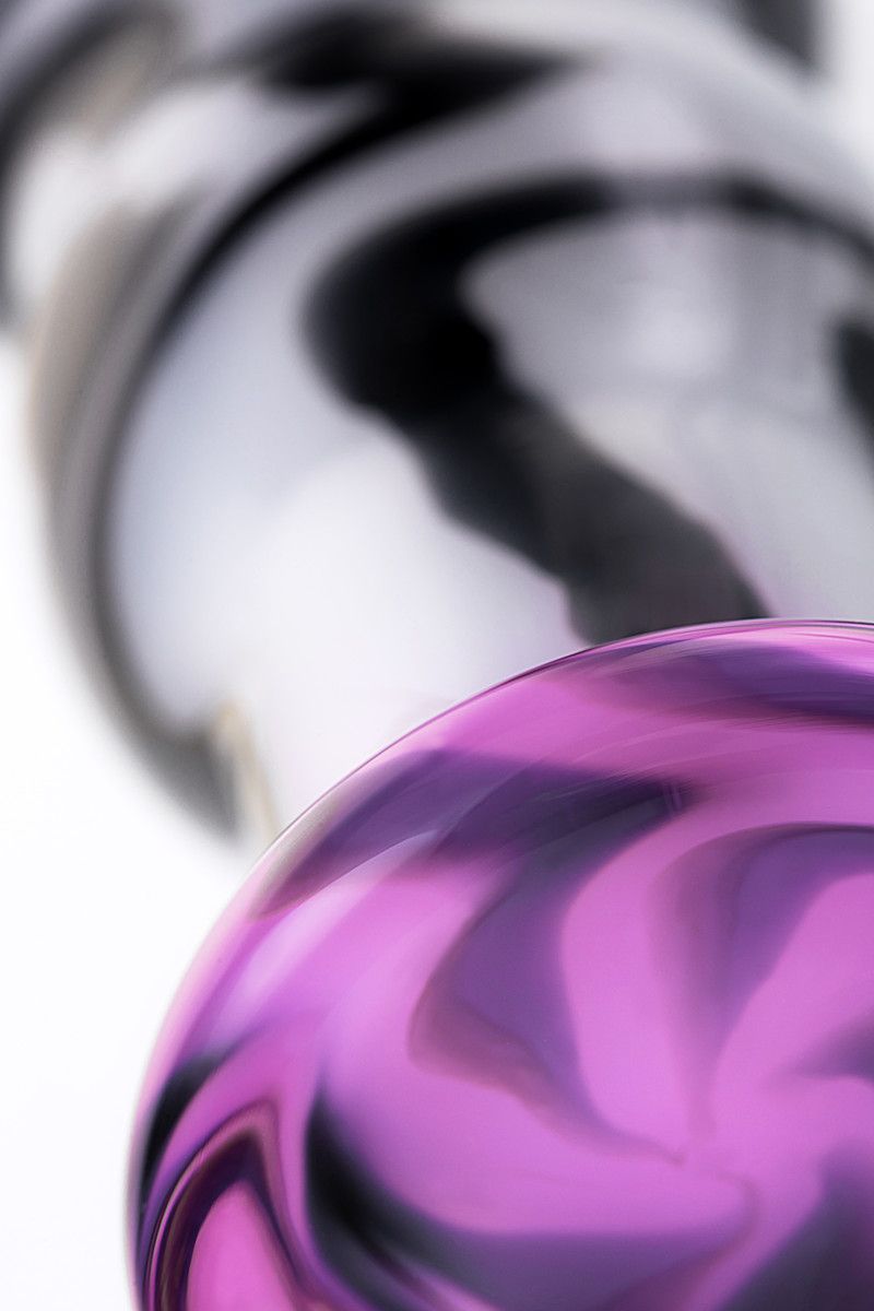 Белая анальная пробка из стекла с чёрными полосами.