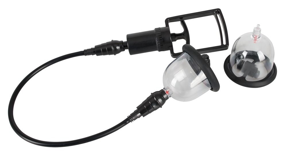 Вакуумная помпа для сосков с вибрацией Bad Kitty Vibrating Nipple Cups/ Удобный рычаг для откачки воздуха. Высота каждой чаши - 5 см., диаметр - 5,7 см. Батарейки в комплекте.
